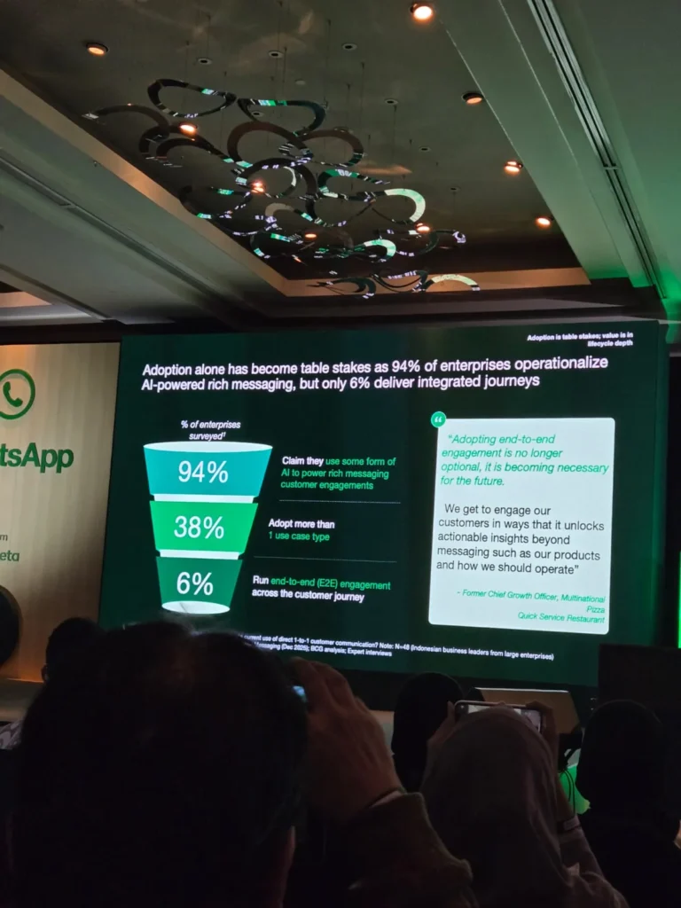 Selanjutnya, kita melihat perubahan besar dalam perilaku konsumen. Riset BCG dalam acara ini membuktikan perusahaan gencar mengadopsi pesan pemasaran. Misalnya, 52% perusahaan lokal menjadikan aplikasi ini saluran komunikasi andalan. Sementara itu, kanal tradisional seperti SMS mulai kehilangan efektivitasnya.